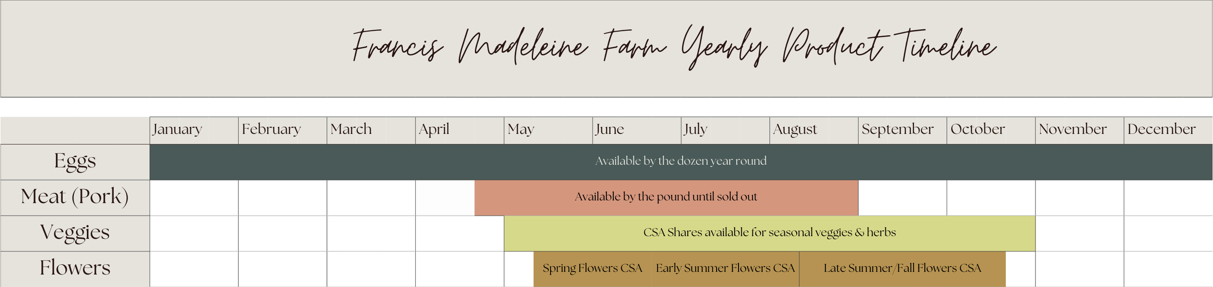 Francis Madeleine Farm uses sustainable farming practices through biodynamic efforts to support the environment, maintain safety and nutritive value of foods, and to foster the most beautiful chemical-free flowers possible.